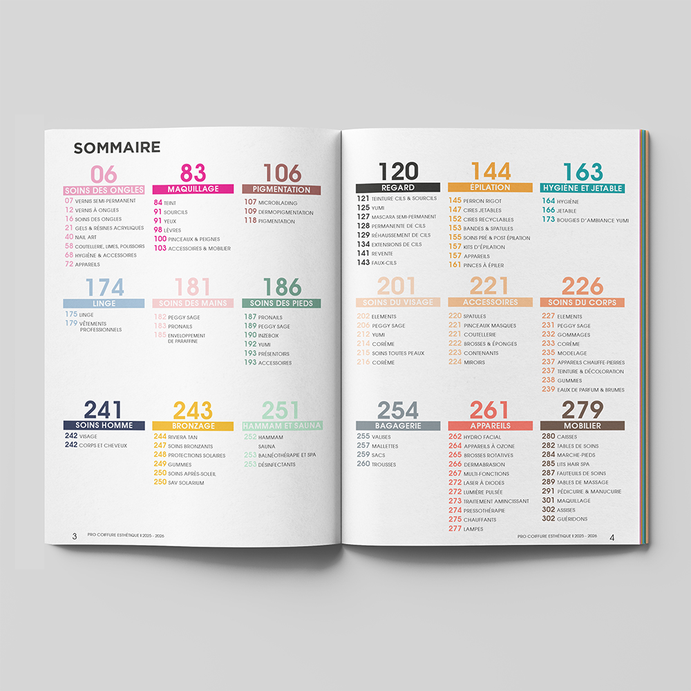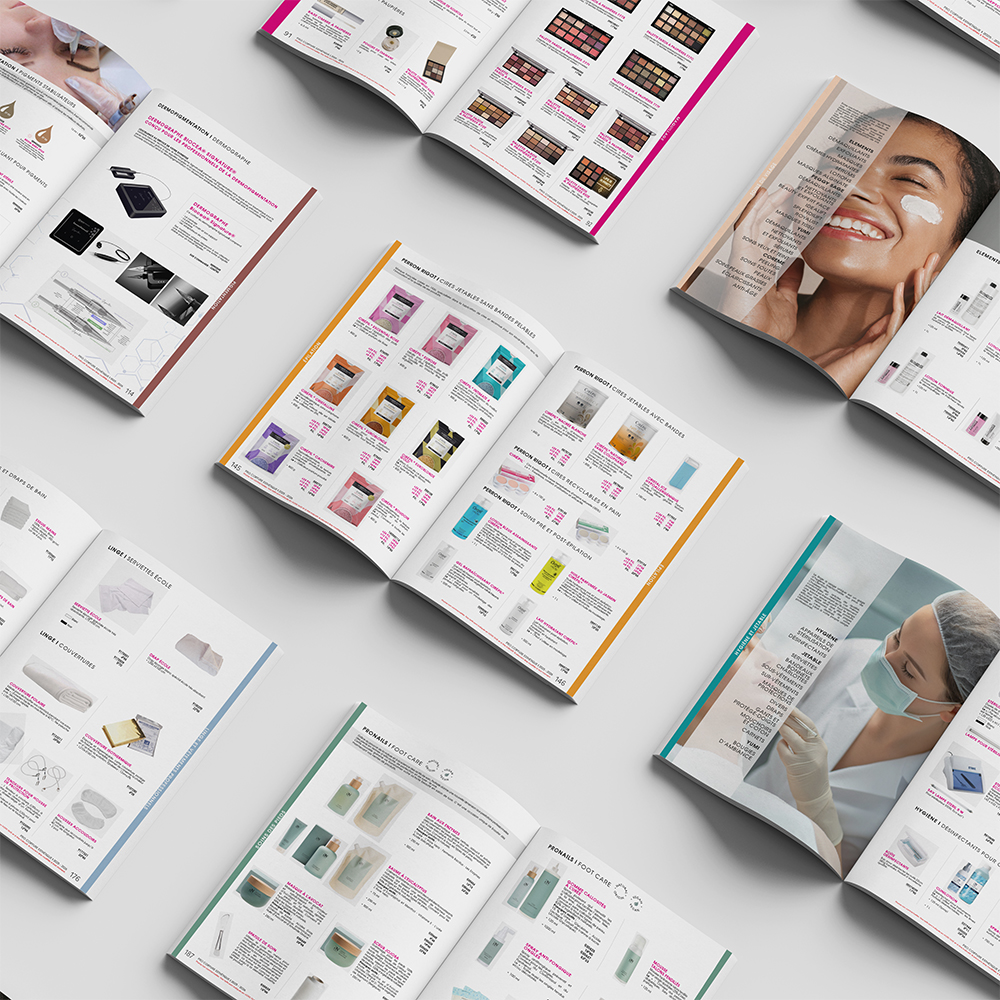 But : Réalisation du catalogue destiné aux professionnels dans l’Esthétique, rassemblant environ 5000 références.